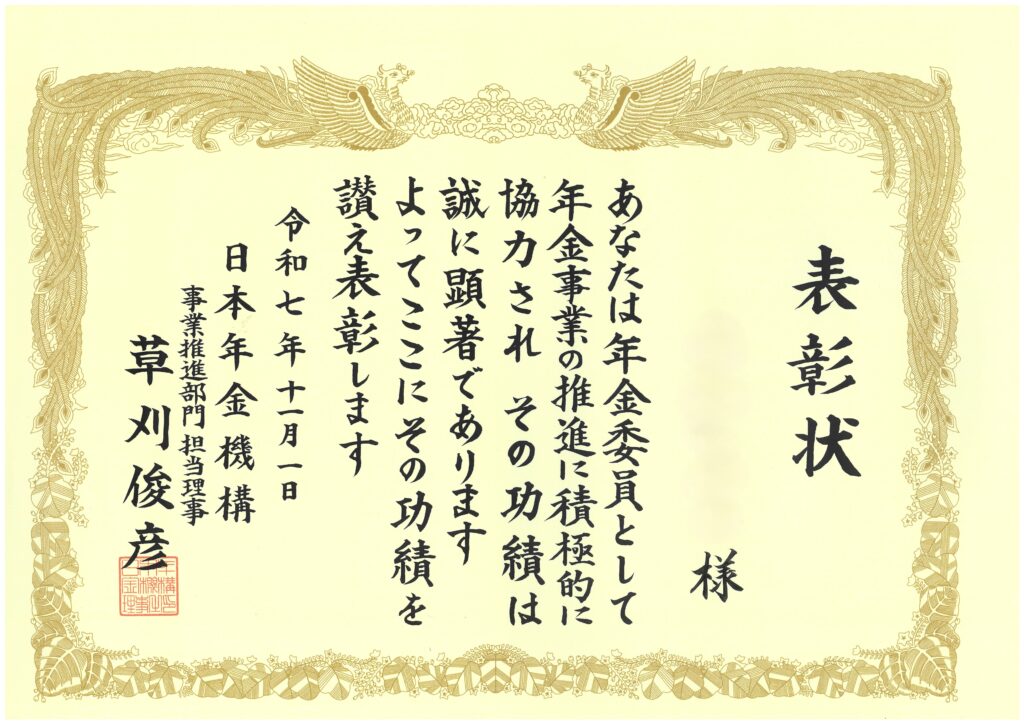 日本年金機構より表彰を受けました