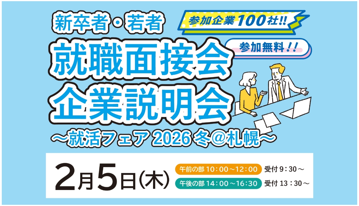 2026冬@2月5日(木)【午後の部】就活フェアに参加します 投稿日 2026年1月21日 「新卒者・若者就職面接会&企業説明会」 ~就活フェア2026冬@札幌~ >>>新卒者・若者のみなさん<<< 株式会社ケイジー技研 出展ページ(午後の部 14:00~ ) 説明会への事前予約はこちら・・・「新卒者・若者 就職面接会&企業説明会」参加フォーム